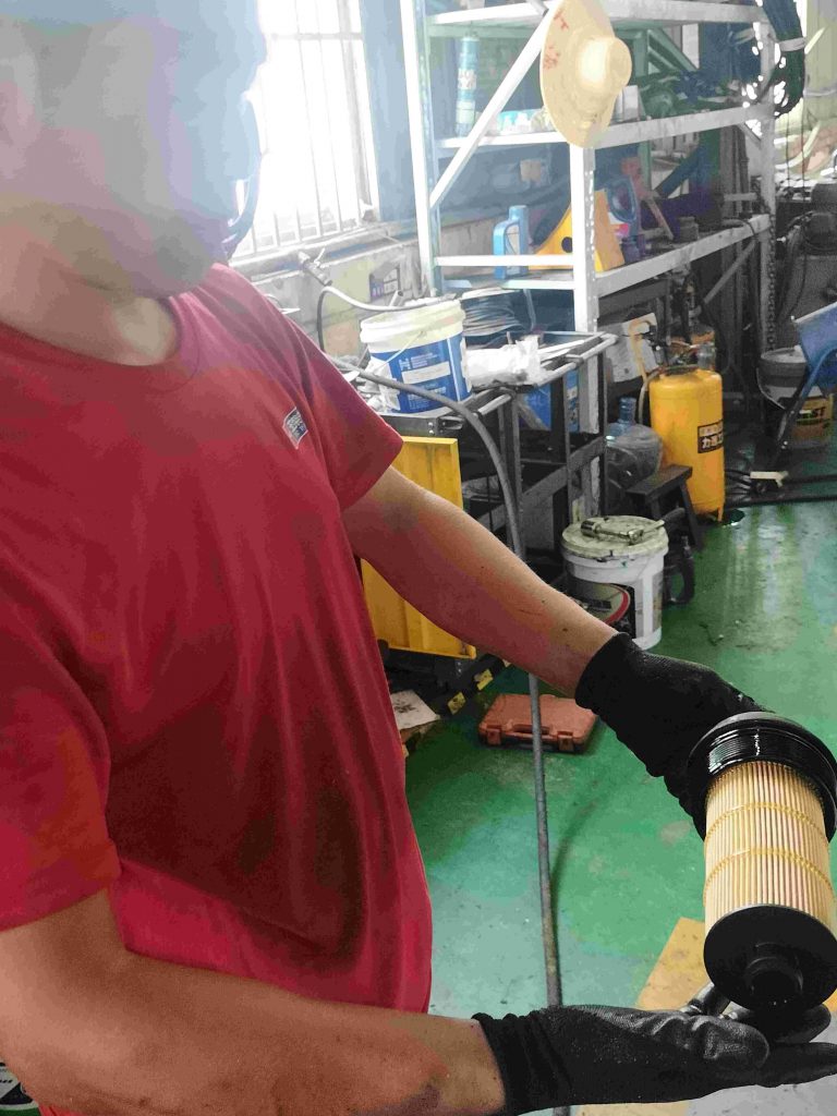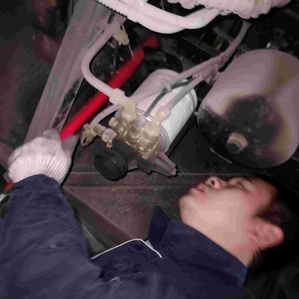 保养团队优先开展基础养护:对车辆传动轴、悬挂轴承等部位打黄油,通过精准注入润滑脂,减少金属部件摩擦损耗,降低行驶异响与卡顿风险,延长部件使用寿命;同步更换机油滤清器,及时替换吸附杂质的旧滤芯,确保机油循环清洁度,避免杂质堵塞油道、磨损发动机,保障动力系统稳定运转;针对燃油系统,更换油水分离器干燥瓶,强化对燃油中水分与杂质的过滤能力,防止水分锈蚀燃油泵、杂质堵塞喷油嘴,减少发动机故障概率。