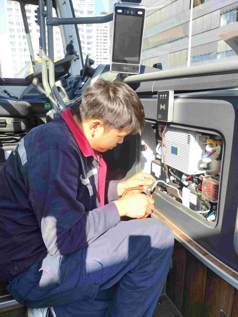 为提升乘客乘车便捷性,本次保养同步为运营车辆加装刷卡机设备:操作界面简洁清晰,反应灵敏;安装位置选在车门附近便于乘客操作的区域,同时配备稳固支架防止颠簸松动。刷卡机的加装,缩短乘客上车时间,提升运营效率,为乘客打造更便捷的乘车体验。