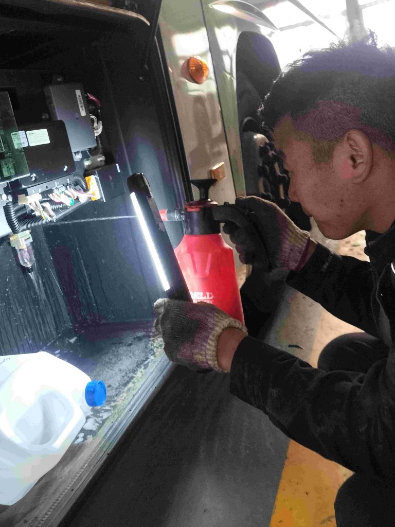 全面排查漏气隐患:以 “不漏一处、不留死角” 为原则,对车辆气路系统开展专项漏气检查 —— 重点检测气管接口、制动气室、气动门控制管路等部位,采用肥皂水涂抹法排查渗漏点,对松动接口重新紧固,对老化气管及时更换。通过彻底排查,确保气路系统压力稳定,避免因漏气导致制动效能下降、气动设备失效。