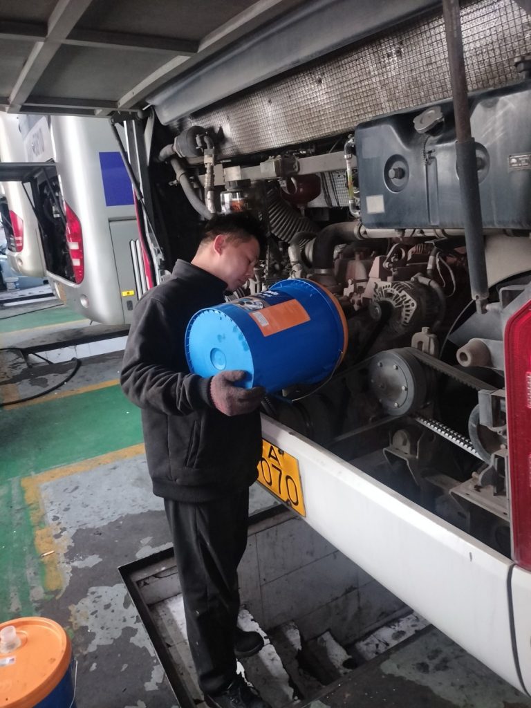 本次维保涵盖多项关键项目:对底盘、悬挂、转向等部位打黄油润滑,减少部件磨损、保证运转灵活;更换机油,保障发动机润滑良好、运行稳定;检查刷卡机线路,确保设备通电正常、刷卡功能稳定;开展车辆四轮保养,维护制动、轴承及轮胎状态,保障行驶平稳安全;检查缓速器工作状态,确保辅助制动性能可靠;更换 / 调整钢板垫皮,优化车辆减震与承载能力,提升乘坐舒适度。